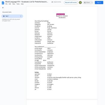 Español 2, Unidad 3 Vocabulario Describing City Buildings ancho(a) wide antiguo(a) old, ancient el edificio building enorme huge, enormous estrecho narrow formal formal informal informal lujoso(a) luxurious moderno(a) modern la oficina office ordinario(a) ordinary sencillo(a) simple...