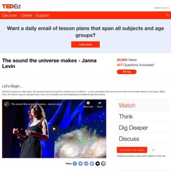 TED-Ed Lesson: We think of space as a silent place. But physicist Janna Levin says the universe has a soundtrack -- a sonic composition that records some of the most dramatic events in outer space. (Black holes, for instance, bang on spacetime like a drum.) An accessible and mind-expanding soundwal…