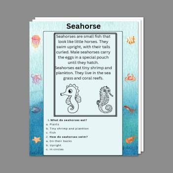 Throughout this unit, students will learn about 10 well-known sea animals: dolphins, sharks, jellyfish, sea turtles, octopuses, whales, starfish, clownfish, seahorses, and crabs. Each animal has its own special features and behaviors, and we will explore how they live, what they eat, and how they move and survive in their watery habitats.