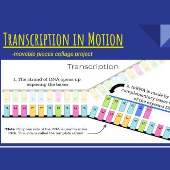 In this activity, students work in groups to create a poster that demonstrates their conceptual knowledge of step 1 of protein synthesis: transcription. Students use moveable nucleotide pieces and must discuss the steps involved in the process in order to correctly "solve the puzzle" of transcription.