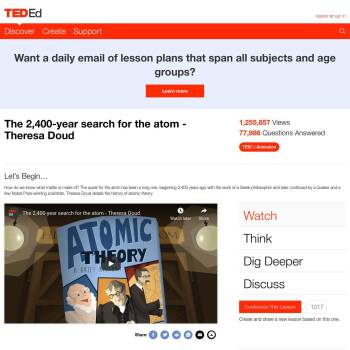 TED-Ed Lesson: How do we know what matter is made of? The quest for the atom has been a long one, beginning 2,400 years ago with the work of a Greek philosopher and later continued by a Quaker and a few Nobel Prize-winning scientists. Theresa Doud details the history of atomic theory.