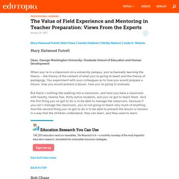 The Value of Field Experience and Mentoring in Teacher Preparation: Views From the Experts