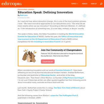 Bob Lenz, founder of several successful charters in California, proposes that innovation in education includes challenging the ways schools currently operate -- and a commitment to doing things differently.