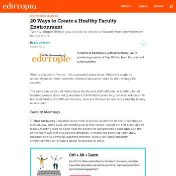 Educator and technologist Jac de Haan shares 20 tips for creating a vibrant and healthy work environment for educators.