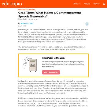Blogger Maurice Elias ponders the characteristics of a memorable commencement speech.