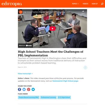 Teachers at Sammamish High in Washington share their difficulties and triumphs as their school moves from traditional delivery of instruction to schoolwide problem-based learning.