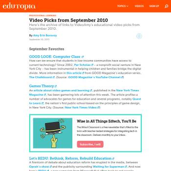 Here's the archive of links to VideoAmy's educational video picks from September 2010.