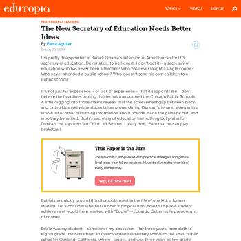 A teacher voices her concerns on whether Arne Duncan has the stance and experience to run our country's public schools.
