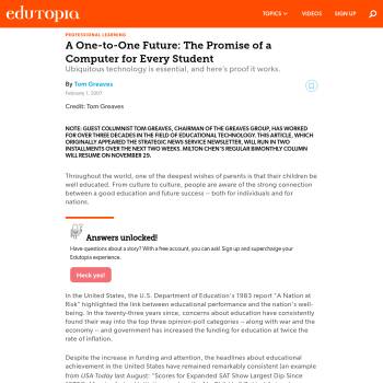 A One-to-One Future: The Promise of a Computer for Every Student