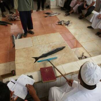In the Saudi Arabian city of Rabigh, the fish auctioneer sits atop a wooden stool in the souk, or market, and calls out the bids on the catch of the day. “35 riyals … 35 … 35 … 40 … 40 … 45 …” This antique chant sounds like some monotone prayer, or the repetitive cry of a shorebird. Bangladeshis and Indians who do the bulk of the fishing in Saudi Arabia—the number of catches is down, and many Saudi fishermen have given up—drag burlap sacks into the souk. They contain a few mackerel, an armful of barracuda, and a bushel of nagel, a prized grouper the color of fire that is now approaching commercial extinction. It’s all over in less than an hour.