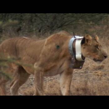 Dr. Mike Heithaus and others try to tranquillize a lion.