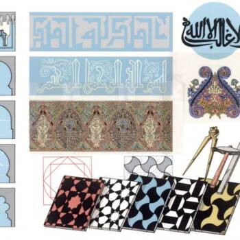 Illustration: Elements of Moorish art, including arches, calligraphy, and decorative tiles.