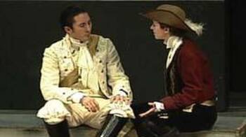 In this video from Penn State's School of Theatre production of Twelfth Night, back at his palace, Orsino summons Feste to perform a song. In the meantime, the Duke and Viola have a conversation about a certain someone Viola (Cesario) fancies, and Orsino offers his love advice. Orsino declares he will not take “no” for an answer from Olivia, but Viola protests that love doesn’t always go according to plan. The two debate men’s and women’s capacities for love, and at the end of their exchange, Orsino orders Viola (Cesario) to return to Olivia with a love token from him.