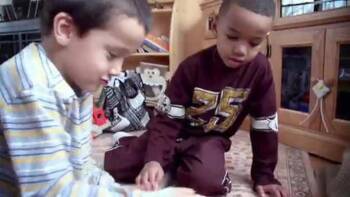This video features two young boys as they find different ways of playing together. They each find different toys and sometimes even work on different activities, but they find a way to play together.