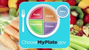 Learn how to eat right! The USDA has a fun new replacement for the classic food pyramid. Balance calories, eat in moderation, make half your plate fruits and veggies, eat more whole grains, choose foods with low sodium, and drink more water while cutting out the sugary drinks. It’s time to start eating healthy!