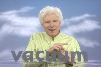 This video segment from Between the Lions shows the practice of sounding out the word "vacuum" part by part, blending sounds together to form a word.
