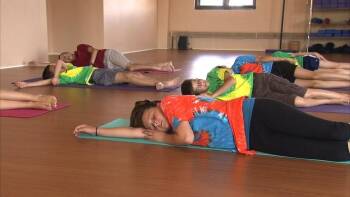 Learn how to release stressors and relax through a variety of yoga poses. With their instructor leading them, children lie on their mats and perform stretches and poses such as the supported shoulder stand and twists to reach a state of deep relaxation.