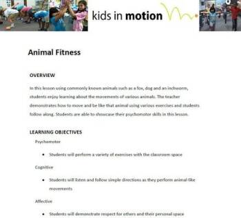 In this lesson using commonly known animals such as a fox, dog and an inchworm, students enjoy learning about the movements of various animals. The teacher demonstrates how to move and be like that animal using various exercises and students follow along. Students are able to showcase their psychomotor skills in this lesson.