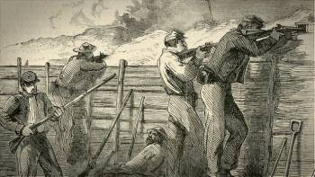 In the last week of May, 1864, Johnston’s Confederate army forms a defensive line that extends through Dallas from New Hope Church to Pickett’s Mill. Soldiers build dense fortifications of dirt and logs to protect their heads. Assaulting these is suicide; yet the Union advances, meeting heavy casualties. The fight at New Hope is named “The Hell Hole.” Attrition stalls Sherman’s advance on Atlanta.