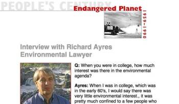 This is an interview with Richard Ayres, an environmental lawyer who helped found the National Resources Defense Council (NRDC). Ayres discusses the lack of environmental interest in the 60s and 70s, the passing of the Clean Air Act, and the changing perception of pollution as a problem. The interview is from the WGBH production People's Century: "Endangered Planet."