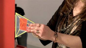 Watch as the "Wall of Fire" in the National Museum of Mathematics shows the relationship between two and three-dimensional figures. This video focuses on the 2D cross sections that can be observed when a laser projects through a 3D tetrahedron. This video was submitted through the Innovation Math Challenge, a contest open to professional and nonprofessional producers.