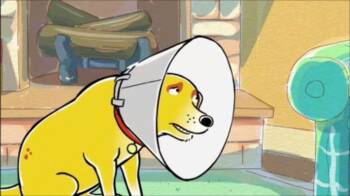 In this MARTHA SPEAKS video, Martha must wear a cone to stop her from scratching an injured ear, but the device scares Jake. Learn about how inventors devise ideas for new contraptions. T.D.’s dad creates several variations of the cone in order to stop Martha from scratching. However, some of the new gadgets create larger problems than scaring Jake. When used as a part of Martha’s True Stories Buddies Program, buddy pairs watch the video then come up with ideas for their own inventions. To familiarize yourself with the program, begin by reading the Martha's True Stories Buddies Program: Overview.
