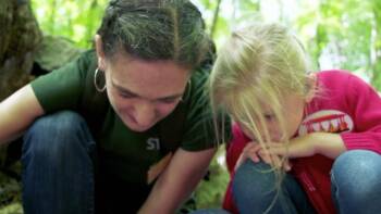 Come on a nature hike with Evie as she explores the woods in her real neighborhood. Carefully Evie and her nature guide explore off trail, looking at plants using a magnifying glass and searching for creatures in a nearby creek.