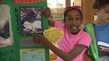 The SciGirls brainstorm, plan, and create multiple presentations to share the information they learned during an Earth Day celebration at the zoo. The girls think it's important to inform people that the amphibian decline is really important and that they can help scientists learn more.
