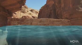 Examine an ancient dam network built to protect Petra’s “Treasury” monument from potentially damaging and deadly flash floods, in this video from NOVA: Building Wonders: Petra. A Swiss architect and archaeologist explains that clues in the landscape suggest that a reservoir, dug channels, and dams once worked together to spread out wintertime flood water that otherwise would have threatened the elaborate façade. The design was so perfect that today a team is repairing the dam network so it can once again protect this important ruin.