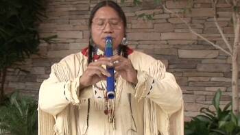 Joseph Fire Crow of the Northern Cheyenne Tribe of Montana performs traditional music through singing, flutes, and other instruments.