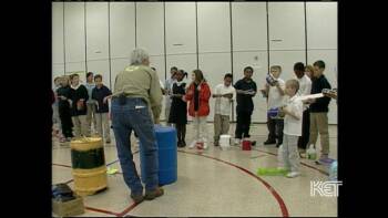 Donald Knaack, a percussionist known as “The Junkman” because he makes music with found junk items, works with students and the Louisville Youth Orchestra and talks about the value of using junk to create rhythms and music.
