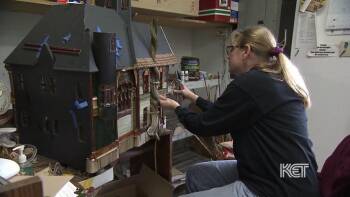 Cindy Johnson, lead botanical architect for the northern Kentucky studio Applied Imagination, shows the process used to create a botanical representation of the Carson Mansion of Eureka, California, one of the most notable examples of Victorian architecture in the United States. Standing 54 inches tall, the model uses the natural textures and shapes of plant materials to express every elaborate detail.