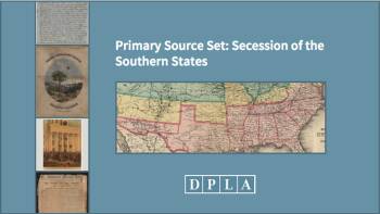 This collection uses primary sources to explore the secession of southern states from the United States prior to the Civil War. Digital Public Library of America Primary Source Sets are designed to help students develop their critical thinking skills and draw diverse material from libraries, archives, and museums across the United States. Each set includes an overview, ten to fifteen primary sources, links to related resources, and a teaching guide. These sets were created and reviewed by the teachers on the DPLA's Education Advisory Committee.