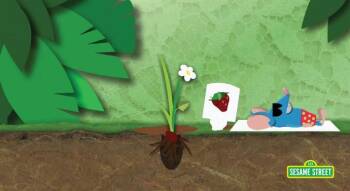 A garden mouse demonstrates growing a strawberry plant. This resource provides a step by step explanation of the process of growing a plant.