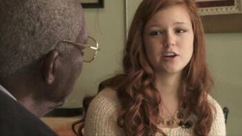 Student reporters meet with Frank Dukes who was a college student in 1962 who helped organize and participate in a selective buying campaign in Birmingham, Alabama.