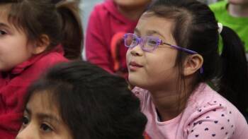 Kindergarten teacher Allison Frometa demonstrates how she uses Peg + Cat video to introduce and reinforce key vocabulary before students play an online game. She models techniques for providing child-friendly definitions, giving multiple examples of using the words, and repeating them frequently. She also uses effective strategies for engaging all students such as Turn and Talk and thumbs up / thumbs down.