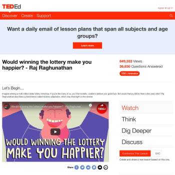 TED-Ed Lesson: Imagine winning a multi-million dollar lottery tomorrow. If you’re like many of us, you’d be ecstatic, unable to believe your good luck. But would that joy still be there a few years later? Raj Raghunathan describes a phenomenon called hedonic adaptation, which may shed light on t…