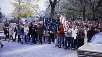 Marches and protests against the Vietnam War began as early as 1965 in the Kansas City region and continued for the following decade. Antiwar activities were not just limited to local college campuses like KU and UMKC, but also arose in the parks and streets of our metro.