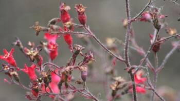 The coral bell (Heuchera), also known as alumroot or rock geranium, is a perennial plant that grows from 1½ to 3 feet tall in sun to partial shade. The leaves are edible, and the roots were used by Native Americans as an anti-inflammatory, a digestive aid, and to stop minor bleeding.
