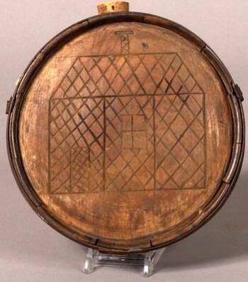 This round wooden barrel canteen is made of cedar and is held together by two tin straps. On one side is an inscription that reads “W. C. FLETCHER 4TH KY.” A house is carved on the other side of the canteen. Wood was used for the canteen because metal supplies were low in the South by 1862. William C. Fletcher joined the Confederate Army in 1861. He was about 18 years old. He died on May 7, 1865, most likely while fighting at the battle of Dallas, in Georgia.