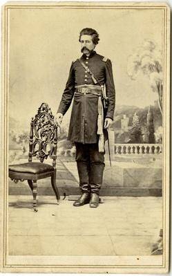 This is a photograph of Union Army Captain James L. Dougherty, of Company D, Eighteenth Regiment Kentucky Infantry. The type of photo is called a carte de visite. Carte de visite is French for "visiting card." During the Civil War, soldiers would trade these cards with each other. They would also send copies home to families and sweethearts. Many soldiers also carried photos of their children, spouses, or other loved ones.