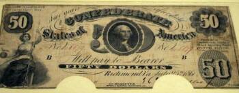 In 1861, the Confederacy began to print its own money. Images of slaves, riverboats, plantations, and even Greek gods appeared on the bills. Counterfeiting—printing fake money—was a big problem in the South. As the war went on, the money lost its value.