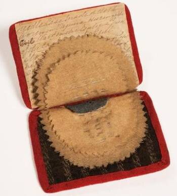 Souvenirs can give us a special connection to the past. People who lived through the Civil War often saved items from important events. This needle case holds a piece of a coat worn by a popular Confederate general, Thomas J."Stonewall" Jackson. Jackson was badly injured during the Battle of Chancellorsville in 1863 and died later at a nearby farm. The family who lived there saved this piece of his coat.