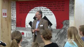 Jamner tells the story of how his mother and her family were discovered in hiding and sent to Auschwitz. He examines a concentration camp mural that in one corner shows a pile of suitcases that were taken away by the Nazis, and he describes the meaning of that image to his mother’s story. He tells the extraordinary story of how his mother and grandmother escaped the gas chamber, addressing the myth that Jews walked willingly to their deaths. He discusses a quote on the mural from Victor Frankl about what is left when everything else is taken away.