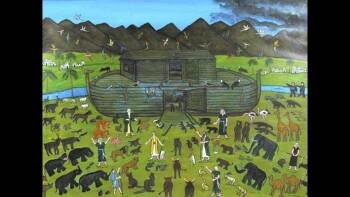 Painting of Noah's ark by artist Hugo Sperger, 1987. (1922-1996.) Medium: Acrylic on masonite; 41" X 51." Source: Kentucky Folk Art Center, Kentucky, USA. 1989.6.15.