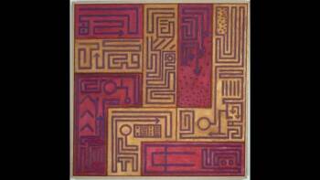 Geometric painting, The Clash, by artist Russell Bellamy, 2001. (American.) Medium: Oil on canvas; 62" X 62.5." Source: The Galleries at Georgetown College, Kentucky, USA.