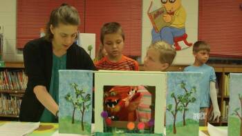 Students create their own trickster tales and then make a puppet show in an after-school and summer arts program at Whitley County Primary School. Teaching artists Jennifer Rose, Talleri McRae, and Alfredo Escobar collaborated on the project with special education teacher Cindy Shelley. In this video, the teaching artists offer general advice for teachers on implementing a multi-step project, from inspiring children’s creativity to making the project budget friendly. Drama students from Whitley County High School also helped in the project, and the teaching artists describe how participants learned to use their voices for dramatic performance.