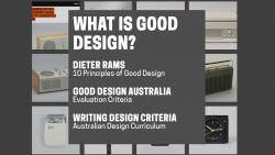 In the Queensland Senior Design Curriculum students must describe design criteria based on the requirements of stakeholders and the principles of good design. To understand what makes design good, students must analyse how designers understand good design. They do this by exploring the ‘Ten principles of good design’ by Dieter Rams (Vitsoe 2017) and the evaluation criteria used by Good Design Australia. This learning lab collection has resources for both. The principles of good design listed in the Australia Curriculum are derived from these two resources.