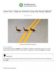 In this activity, students will read about wildlife corridors, which are paths that animals can take to get safely between two areas with the same habitat. They identify an animal that lives in their area and a road that it will have to cross. They design a way for the animal to cross this road and build a model of their design. This activity is adapted from an activity in a grade 3 engineering module in Smithsonian Science for the Classroom.