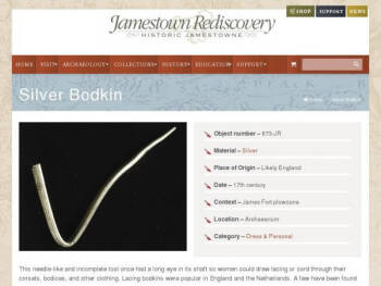 17th century silver bodkin; Jamestown, VA